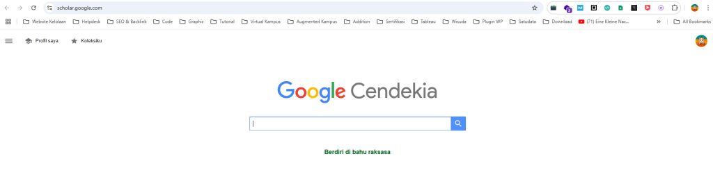 Google Scholar adalah sebuah mesin pencari yang dirancang khusus untuk mencari literatur akademik dan ilmiah. Layanan ini memungkinkan pengguna untuk menemukan berbagai jenis dokumen, termasuk artikel jurnal, tesis, buku, laporan konferensi, dan paten dari berbagai disiplin ilmu.