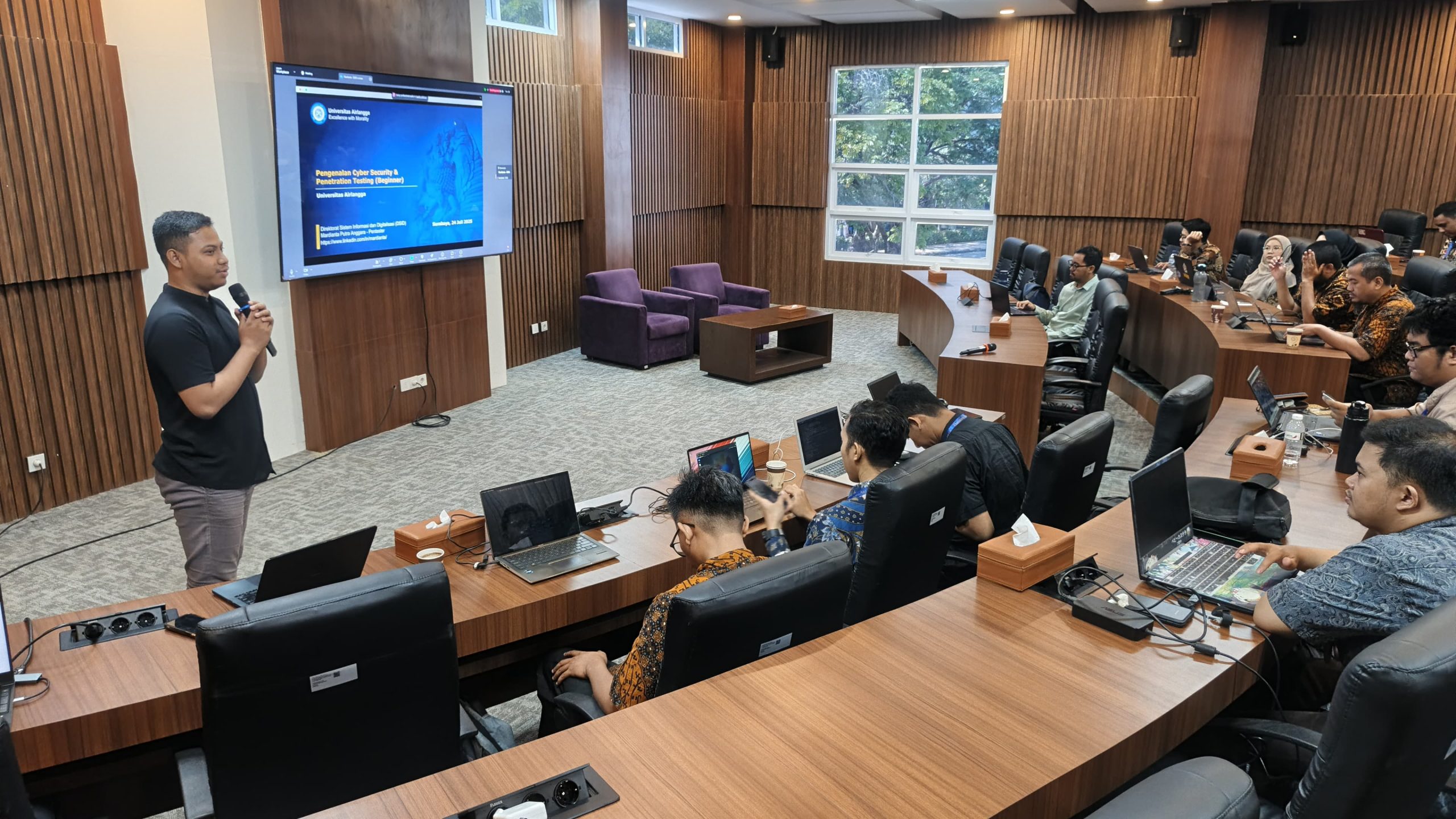 Surabaya – Direktorat Sistem Informasi dan Digitalisasi (DSID) Universitas Airlangga sukses menggelar kegiatan Beginner Hacker pada Kamis, 24 Juli 2025, bertempat di Ruang Dewa Ruci, Airlangga Convention Center. Kegiatan ini bertujuan untuk memperkenalkan dasar-dasar keamanan siber serta meningkatkan literasi keamanan digital di kalangan civitas akademika.