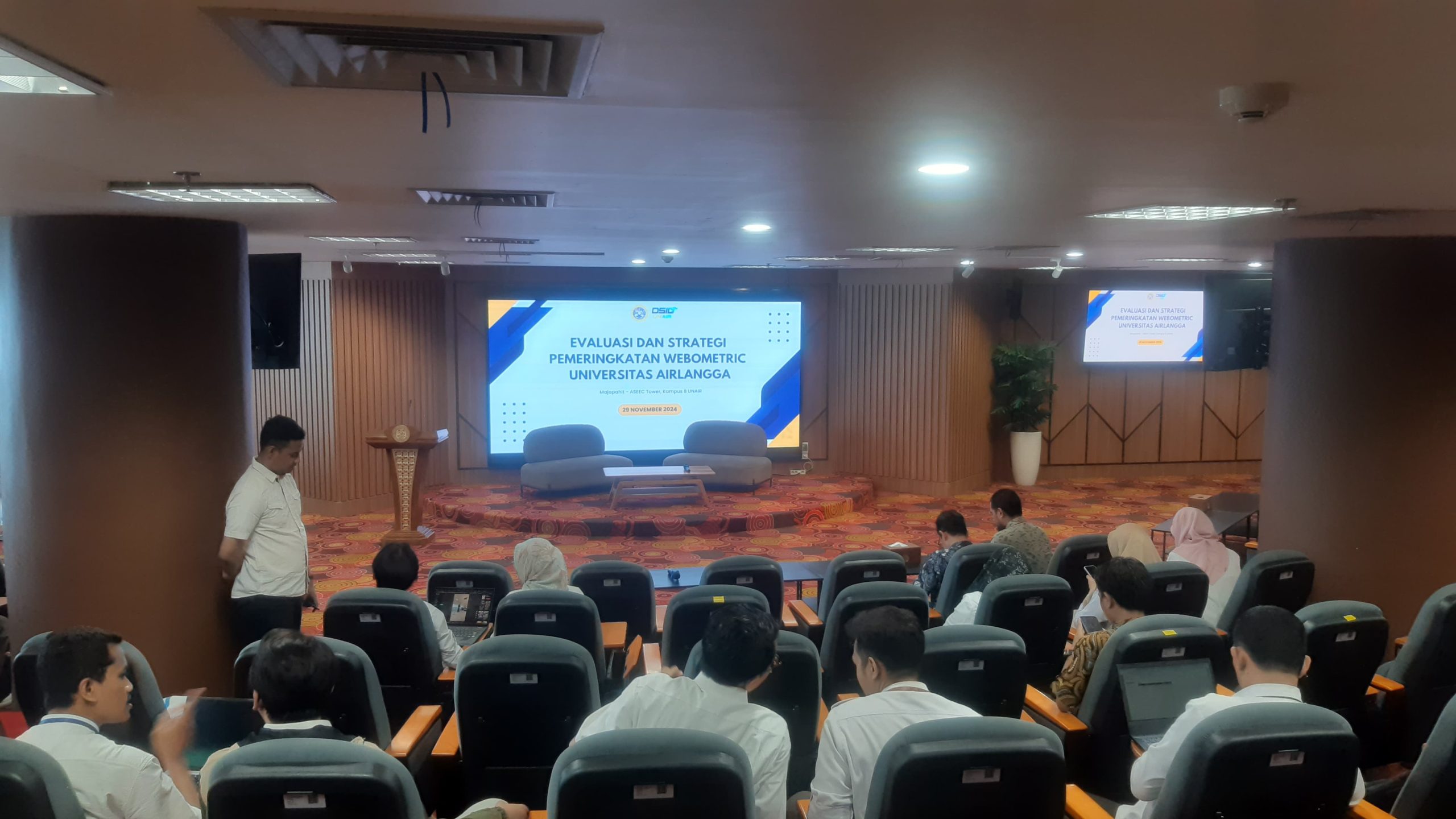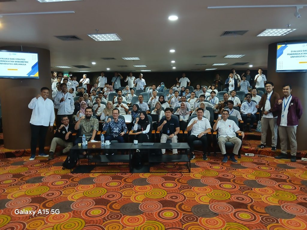 Surabaya, 29 November 2024 – Universitas Airlangga kembali menggelar seminar bertajuk “Evaluasi & Strategi Meningkatkan Peringkat Webometrics UNAIR” pada Jumat, 29 November 2024, bertempat di Ruang Majapahit, Gedung ASSEC Tower Lt. 5, Kampus B UNAIR. Seminar ini dihadiri oleh 140 peserta, yang terdiri dari pengelola website fakultas, direktorat, dan unit kerja di lingkungan UNAIR.