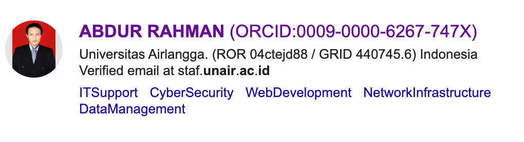 • Afiliasi (nama fakultas , Universitas Airlangga ROR 04ctejd88 / GRID 440745.6 INDONESIA)